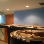 The layout is a combination of double deck and around the walls design in five different rooms. Construction is homasote over plywood roadbed on open grid bench work with approximately 350’ of main line and 30’ of branch line. The minimum radius is 12” and the maximum grade is 2%. There are two traditional staging yards representing Superior, Wisconsin and Minneapolis, Minnesota as well as one combination staging/active yard representing Altoona yard in Eau Claire. There is also a small staging yard representing “west” Eau Claire and the CMO line to Minneapolis as well as a “racked” staging yard of removable “racks” that represent everything east of Park Falls, Wisconsin.